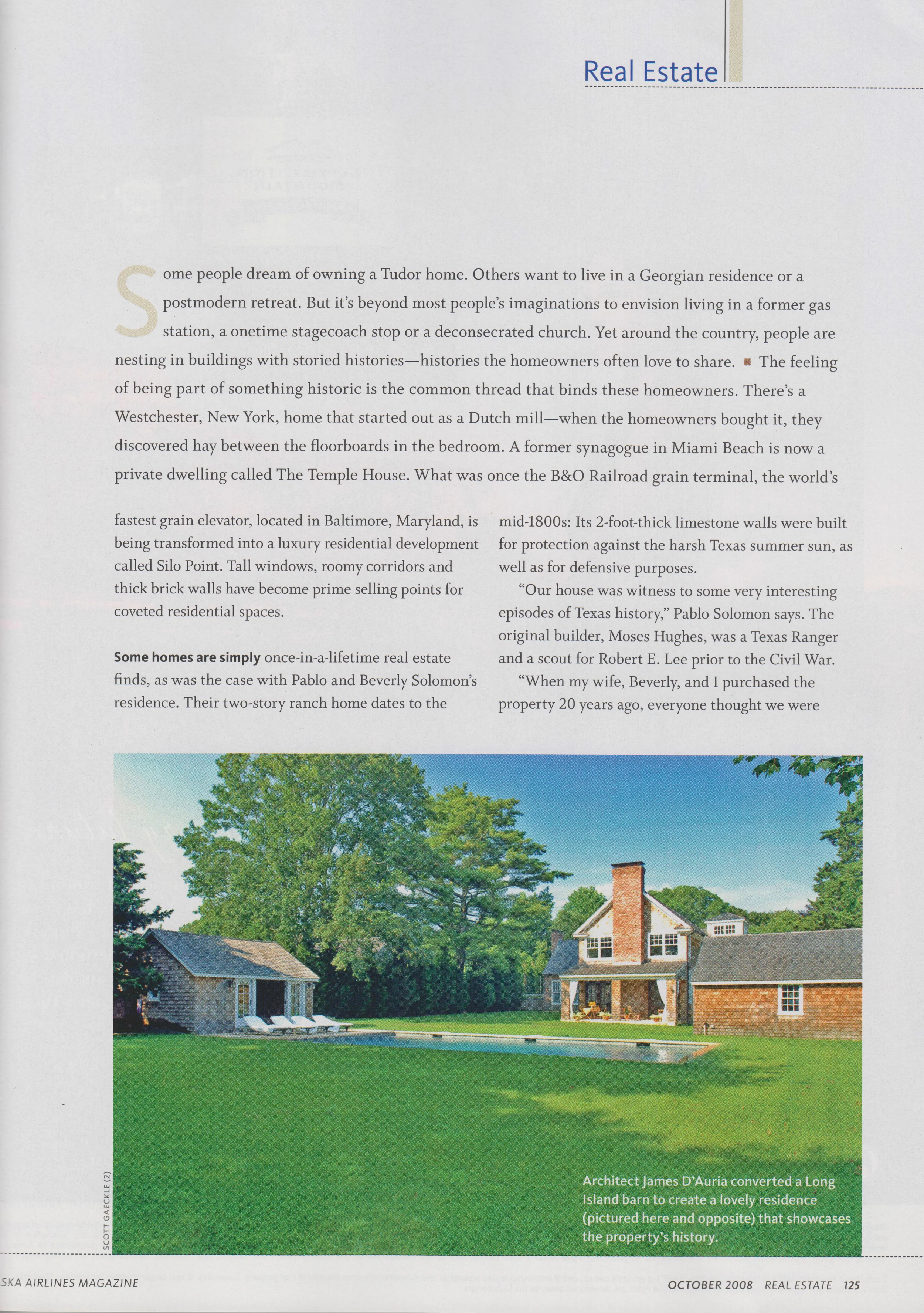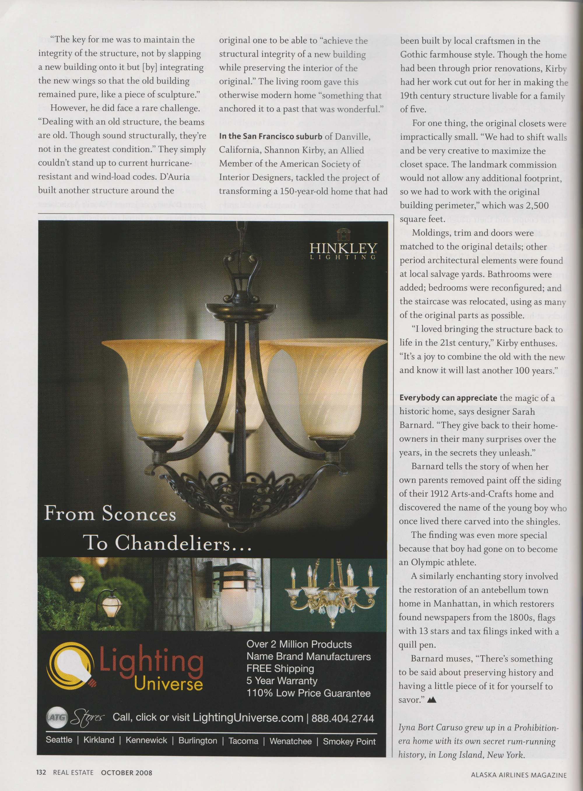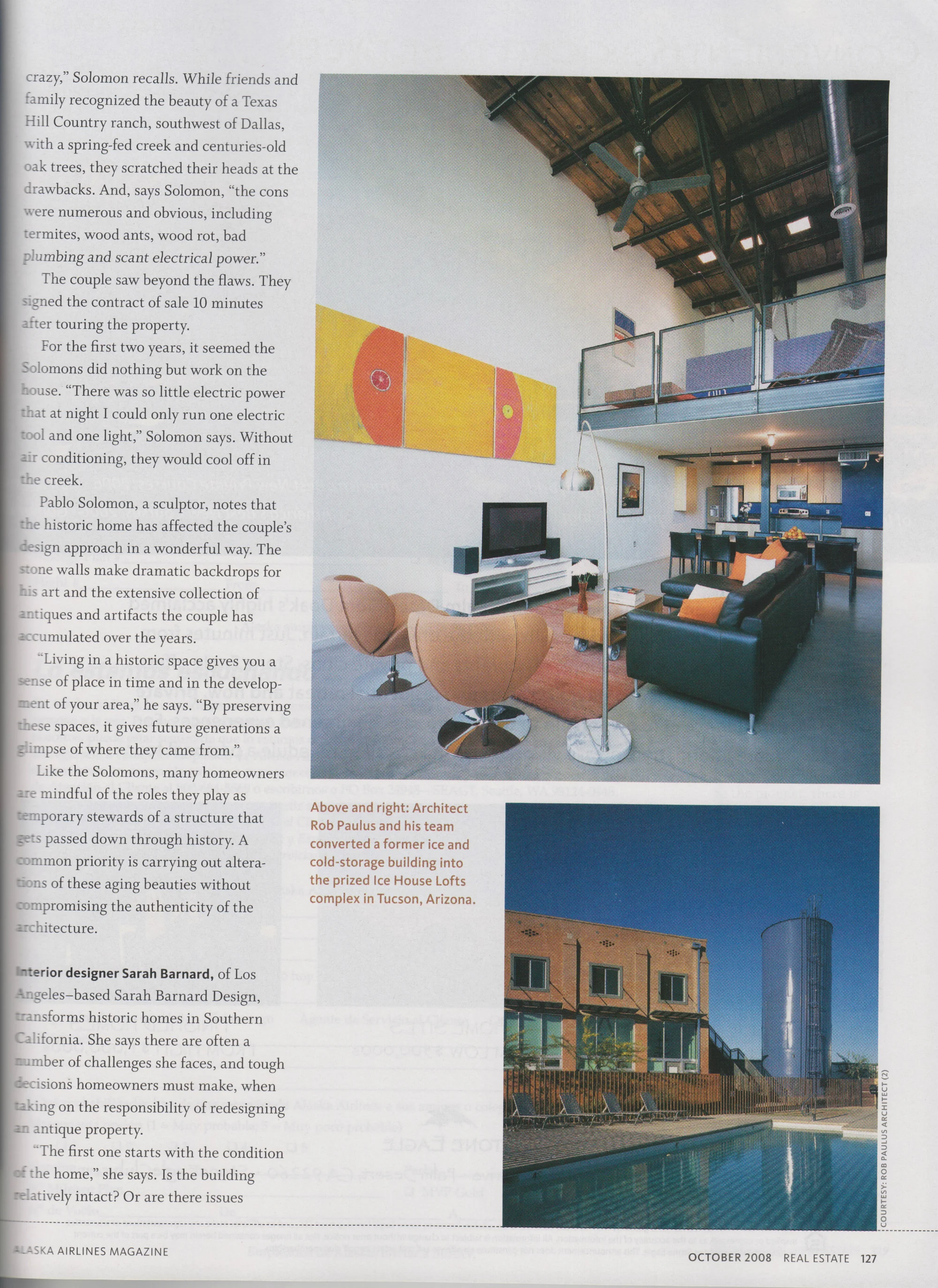 "Modern Spaces in Historic Places" - Alaska Airlines Magazine, October 2008.
