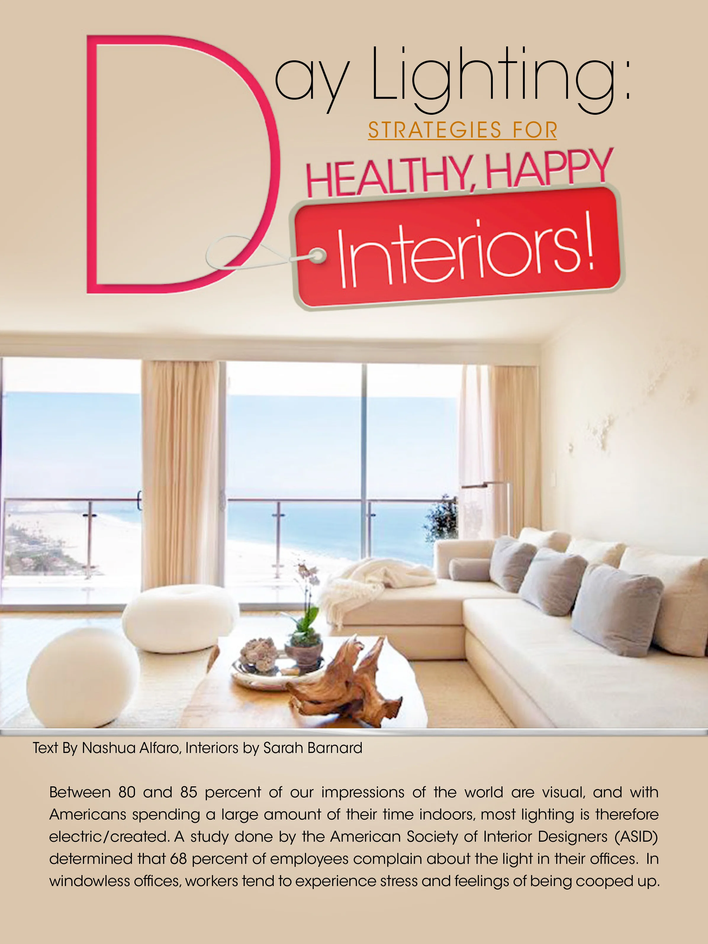 "Day Lighting Strategies for Healthy Happy Interiors." DesignDesign Magazine, November 2012.