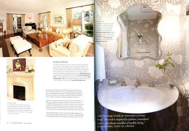 Green design + historic preservation makes sense! Interior designer and LEED AP, Sarah Barnard was raised by historic preservationist and has been active in saving architectural resources for years. This lovely eight page feature story shares images from one of Sarah’s recent Palos Verdes Estates projects and provides insight and inspiration for owners of older homes.